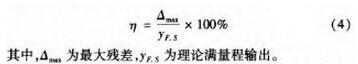 本文采用*小二乘法進(jìn)行線性度評定,即擬合直線為*小二乘直線。*小二乘直線保證了傳感器至極輸出的平均值對它的偏差的平方和為*小,即可以保證擬合直線得到的結(jié)果與實(shí)測結(jié)果之間的偏差很小,更具可靠性。根據(jù)定義,線性度即是校準(zhǔn)曲線對這條*小二乘擬合直線的偏離程度。