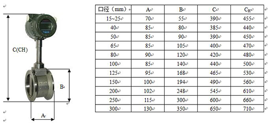 選型 例如: HPLUGB-DN5024P6 滿管型壓電式渦街流量儀表,通徑DN50,法蘭卡裝