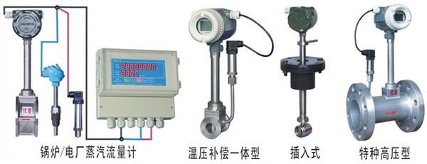 2、溫度補(bǔ)償一體型渦街流量計(jì)還帶有溫度傳感器,可以直接測量出飽和蒸汽的溫度并計(jì)算出壓力,從而顯示飽和蒸汽的質(zhì)量流量。