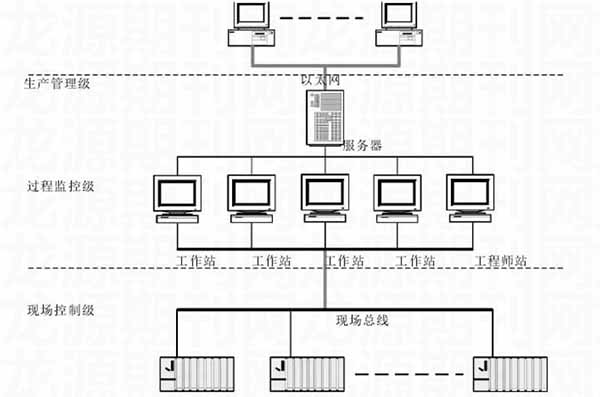 針對鎢礦選廠生產(chǎn)的實(shí)際需求,這里應(yīng)用相應(yīng)的自動(dòng)化技術(shù),對自動(dòng)化監(jiān)控系統(tǒng)進(jìn)行了設(shè)計(jì)。在系統(tǒng)設(shè)計(jì)中,遵循“方案合理、技術(shù)先進(jìn)、運(yùn)行可靠、操作方便”的原則,系統(tǒng)整體采用集散控制系統(tǒng),基于現(xiàn)場總線通訊,其整體網(wǎng)絡(luò)構(gòu)架如下: