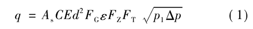 式中,、為標準狀態(tài)下天然氣體積流量,m; /s; A,為秒計量系數,視采用計量單位而定,此處A=311 794 x 10 -6; C為流出系數;E為漸近速度系數;d為孔板直徑,mm; F}為相對密度系數;。為可膨脹系數;F:為超壓縮因子;F:為流動溫度系數;P,為孔板上游側取壓孔氣流絕對靜壓,Pa;0P為氣流流經孔板時產生的壓差,Pao