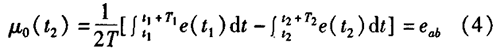 制藥廠污水流量計一般都采用工頻交流電源供電,其電源電壓的幅值和頻率的變化都會給制藥廠污水流量計帶來電源性干擾噪聲。對電源電壓的幅值變化,因采用多級集成穩(wěn)壓,一般而言電源電壓的幅值變化對電磁流量的測量精度影響不大。當電源電壓的頻率波動時,雖然其波動范圍有限,但對制藥廠污水流量計測量精度影響較大。為了解決工頻干擾問題,實現(xiàn)對流體流速感應電勢e柚信號的準確測量,需利用以下基本關系:①勵磁周期為工頻周期的整數(shù)倍,即勵磁頻率為50/nHz(n為偶數(shù));②正負勵磁下的同相位采樣。圖2是對應低頻矩形波勵磁形式下的典型電勢信號形式,按上述關系在一個勵磁周期下,若假設t。和t:點為工頻干擾的等效干擾點,且采樣寬度T=T1=T2,則e –ab的基本算式為:,