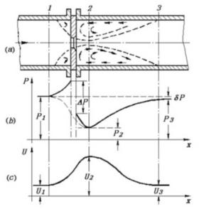 流體流經(jīng)節(jié)流件時壓力和流速變化情況