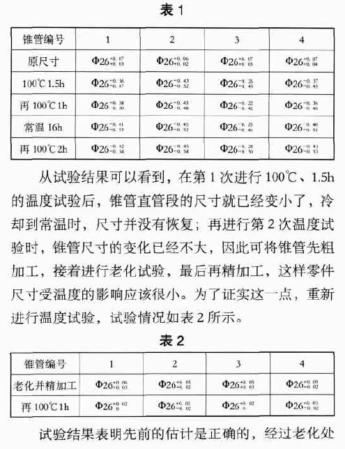 理后再精加工的錐管完全能夠達(dá)到設(shè)計(jì)要求。經(jīng)過(guò)數(shù)次試驗(yàn),可以得出如下結(jié)論:耐腐型浮子流量計(jì)錐管的加工工藝和基型產(chǎn)品有很大不同,合理的工藝過(guò)程應(yīng)該是粗加工錐管→老化(100℃、2 h)→精加工成形。
