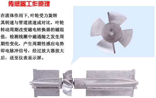 渦輪流量計采用渦輪進行測量。它先將流速轉換為渦輪的轉速,再將轉速轉換成與流量成正比的電信號。這種流量計用于檢測瞬時流量和總的積算流量,其輸出信號為頻率,易于數(shù)字化。圖中感應線圈和永久磁鐵一起固定在殼體上。當鐵磁性渦輪葉片經過磁鐵時,磁路的磁阻發(fā)生變化,從而產生感應信號。信號經放大器放大和整形,送到計數(shù)器或頻率計,顯示總的積算流量。同時將脈沖頻率經過頻率-電壓轉換以指示瞬時流量。葉輪的轉速正比于流量,葉輪的轉數(shù)正比于流過的總量。渦輪流量計的輸出是頻率調制式信號,不僅提高了檢測電路的抗干擾性,而且簡化了流量檢測系統(tǒng)。它的量程比可達10:1,精度在±0.2%以內。慣性小而且尺寸小的流量計的時間常數(shù)可達0.01秒。