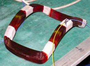 由此可見,尿酸流量計正常運行需要有穩(wěn)定的磁場,而磁場正是靠傳感器線圈內(nèi)的 勵磁電流來產(chǎn)生的。勵磁線圈如圖2所示。
