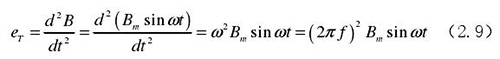 從上圖 2.5 中可以觀察到兩個電極、勵磁線圈、轉(zhuǎn)換器內(nèi)阻之間形成了一個閉合回路,將此回路稱之為初級繞組,從理論上進行分析,磁力線 B 應(yīng)當平行于勵磁線圈所產(chǎn)生的磁感應(yīng)線,但在實際的應(yīng)用過程中由于工藝差異,因此無法達到理想狀態(tài),會產(chǎn)生磁力線穿過勵磁線圈磁感應(yīng)線的情況,此時將會產(chǎn)生相應(yīng)的感應(yīng)電動勢,將此部分感應(yīng)電動勢稱為變壓器效應(yīng)。此效應(yīng)同樣滿足于楞次定律,利用楞次定律進行計算可得如下電動勢: