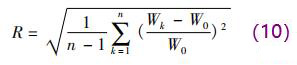 為了客觀評(píng)價(jià)不同異徑截面內(nèi)權(quán)函數(shù)分布的均勻程度,采用整體均勻度來定量衡量權(quán)函數(shù)的均勻性,設(shè)電極截面內(nèi)每個(gè)節(jié)點(diǎn)的權(quán)函數(shù)值為 Wk,相應(yīng)截面的權(quán)函數(shù)平均值為 W0,則電極截面內(nèi)權(quán)函數(shù)的整體均勻度 R 為