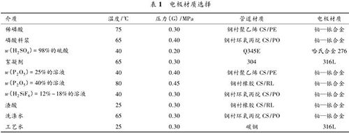 國內(nèi)某 300 kt/a 磷酸裝置中,含有不同溫度、不同壓力、不同濃度的多種酸液,包括:稀磷酸、濃硫酸、磷酸料漿、絮凝劑、P 2 O 5 溶液、H 2 SiF 6 溶液、渣酸、洗滌水、酸性循環(huán)水、工藝水等。如此復(fù)雜的工藝介質(zhì)對流量計的選型要求很高,酸液的配比、濃度、溫度、雜質(zhì)、溶解氣體以及流速等都會影響接液材質(zhì)的耐腐蝕性。