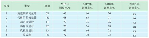 在2017年的工作基礎(chǔ)上,對(duì)2018年送檢的氣體流量計(jì)進(jìn)行了抽查,并按不同類(lèi)型進(jìn)行了統(tǒng)計(jì)(表2)。