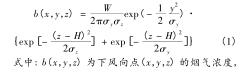 式中: b(x,y,z) = w × e(x,y,z),其中 e(x,y,z) 為二氧化硫濃度與循環(huán)流化床dn150渦街流量計煙氣排放源煙氣強度的比例系數(shù);f 為平均風速,m/s; w 為地面空氣內(nèi)煙氣排放強度;σ x 為橫向擴散系數(shù)受環(huán)境穩(wěn)定度與下風向距離因素的影響程度。式(3)中描述的是基于時間變化的循環(huán)流化床dn150渦街流量計煙氣排放源煙氣排放強度計算模型。