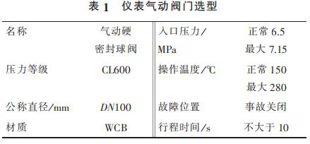 1) 蒸汽計(jì)量流量計(jì)出口管線總閥泄漏無(wú)法在線處理,導(dǎo)致氣化爐停車(chē)。在入氣化爐根部增加 2 臺(tái)儀表氣動(dòng)閥門(mén),要求每月進(jìn)行 2 次開(kāi)、關(guān),防止閥門(mén)出現(xiàn)卡塞現(xiàn)象。 新增 2 臺(tái)儀表氣動(dòng)閥門(mén)相關(guān)參數(shù)見(jiàn)表 1。