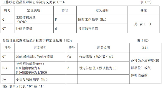 工作狀態(tài)液晶顯示標(biāo)志字符定義見表(二):
