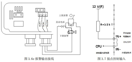 3.4.5 頻率(脈沖)、上下限報(bào)警、流向標(biāo)示等輸出均為集電極開路的電平輸出信號。