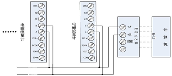 手操器與污水流量計(jì)量表連接如下圖所示: