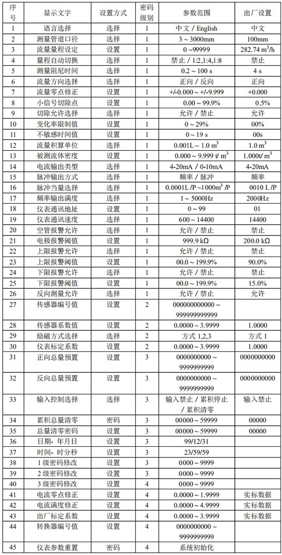 儀表參數(shù)決定儀表的運(yùn)行狀態(tài)、計(jì)算方法、輸出方式。正確地選用和設(shè)置儀表參數(shù),可使儀表運(yùn)行在*佳狀態(tài),能得到較高的測(cè)量顯示精度和測(cè)量輸出精度。