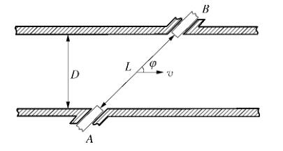 制藥廠污水流量計為獨立測量設(shè)備,由多個位于管線內(nèi)壁的超聲傳感器組成。傳感器由緊固機械裝置插入管道中,超聲脈沖被 2 個傳感器交替地發(fā)射和接收。由于電磁在逆流和順流情況下的傳輸時間 tu 和 t d 不同,通過時差法可以計算得到流體流速,工作原理如圖 1 所示。制藥廠污水流量計還可以配置成雙向計量模式,精度不變。