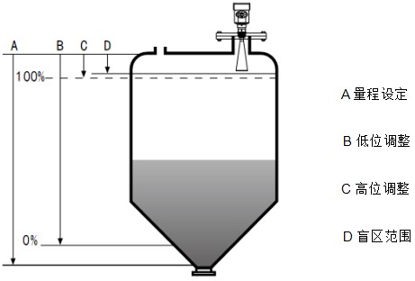 注:使用瀝青液位計(jì)時(shí),務(wù)必保證*高料位不能進(jìn)入測量盲區(qū)(圖中D所示區(qū)域)。
