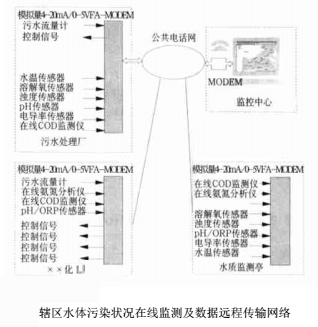 本文介紹的水體污染狀況在線監(jiān)測及數(shù)據(jù)遠(yuǎn)程傳輸網(wǎng)絡(luò)可以連續(xù)、自動監(jiān)測排污口的污水流量和水質(zhì)參數(shù),既可以分別顯示污水流量的瞬時(shí)值/日平均值/月平均值、pH/溶解氧/電導(dǎo)率/濁度/水溫/COD/TOC/NH4-N/**3-N等常規(guī)參數(shù),也可以實(shí)時(shí)計(jì)算污染物排放總量并經(jīng)公共通信網(wǎng)絡(luò)(電話線路)傳輸至區(qū)(縣)、市級的監(jiān)控中心,在轄區(qū)的電子地圖(GIS)上動態(tài)顯示各排污口的*新數(shù)據(jù),是環(huán)保、市政、水利等監(jiān)理部門實(shí)時(shí)觀測轄區(qū)水質(zhì)變化情況的現(xiàn)代化管理工具。系統(tǒng)組成如下: