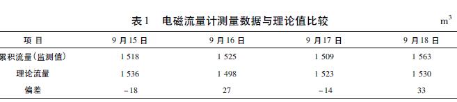 生活污水流量計價格與V錐流量計都適用于環(huán)境較惡劣的場合。在測量精度上,V錐流量計要比生活污水流量計價格高,而且安裝更靈活,對上、下游直管段的要求很短,但V錐流量計要比生活污水流量計價格昂貴得多。生活污水流量計價格的測量精度雖不及V錐流量計,但在此應用中完全可以滿足要求,而且運行穩(wěn)定性和流量數(shù)據(jù)準確度也很好。表1是使用生活污水流量計價格對園區(qū)某個企業(yè)監(jiān)測點連續(xù)4天的累積流量監(jiān)測數(shù)據(jù)與理論流量的對比。
